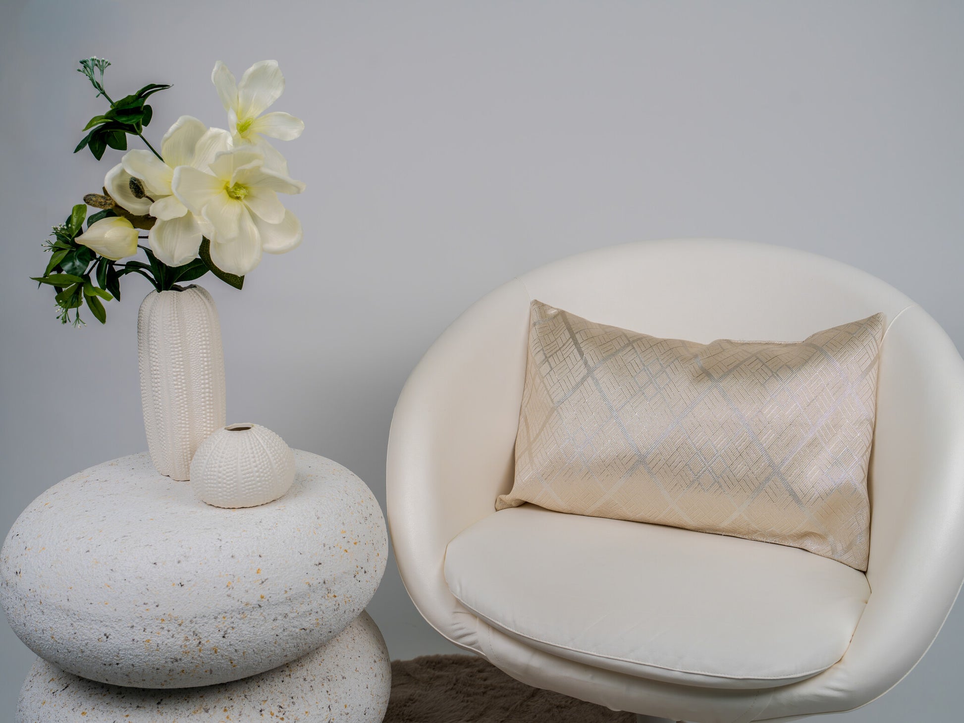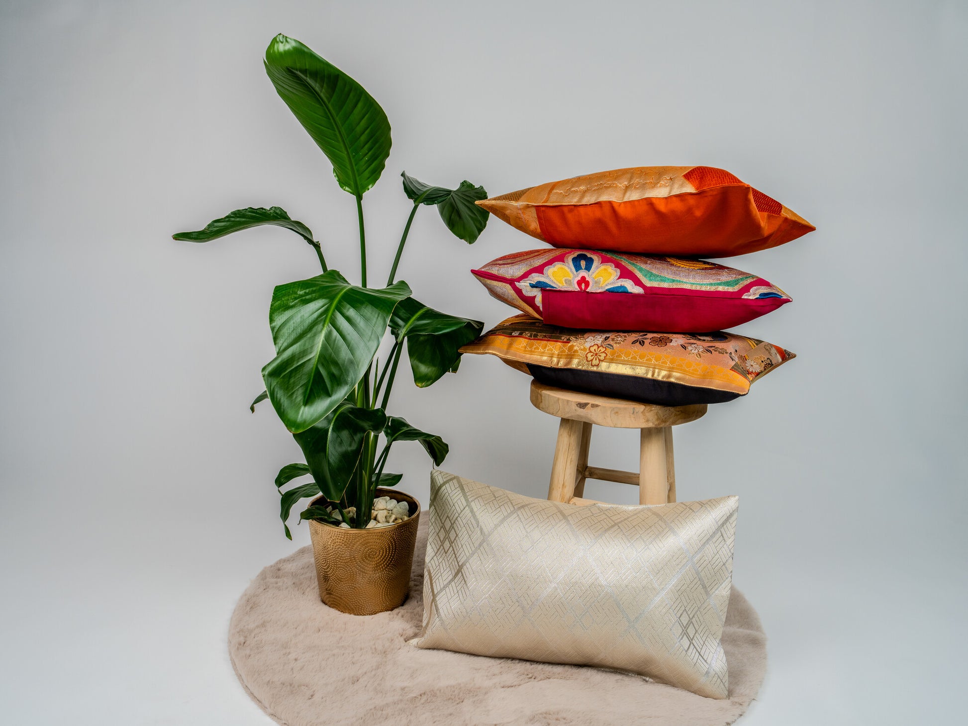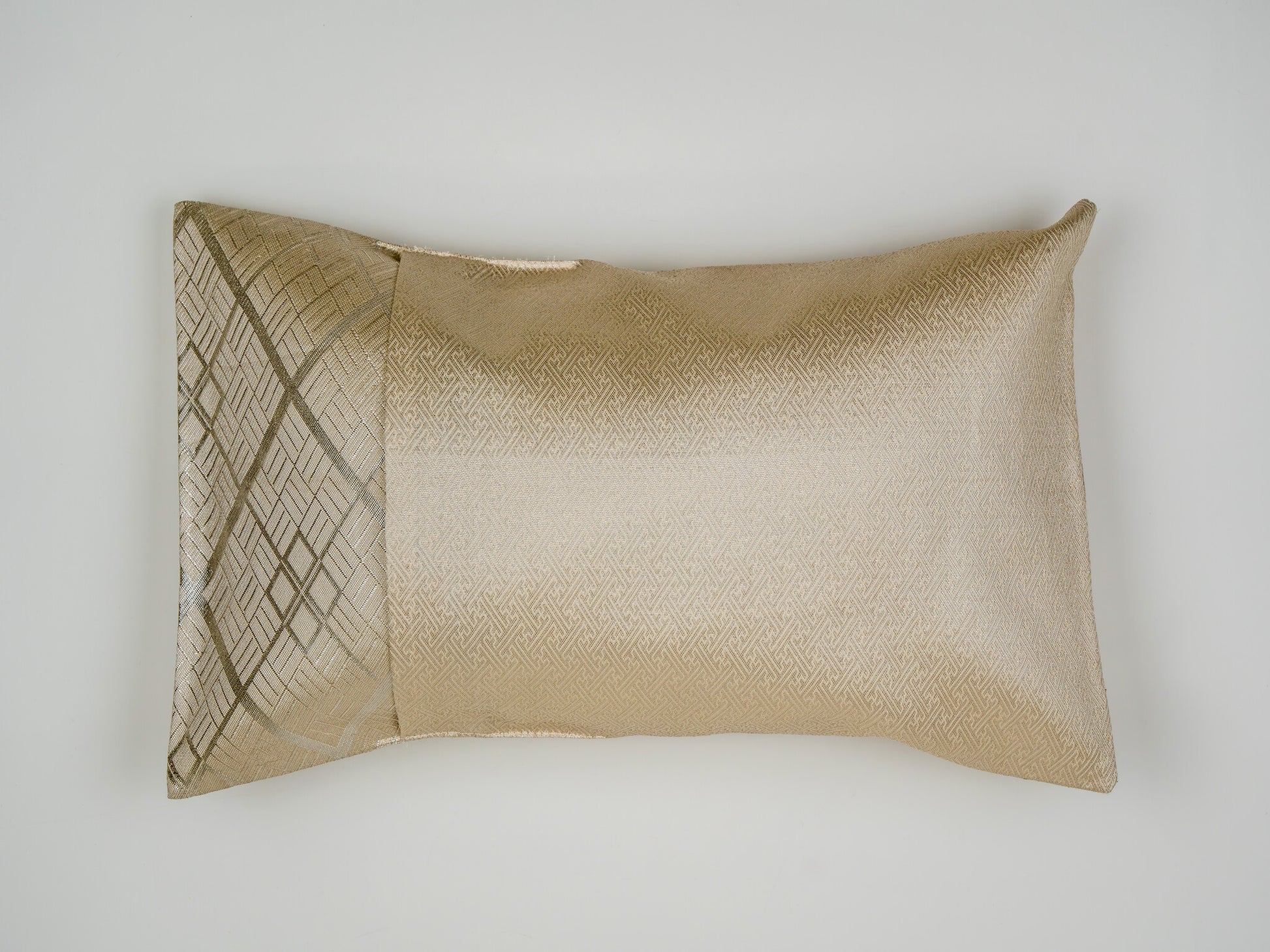 Invite a whisper of Kyoto’s imperial elegance into your sanctuary with The Champagne Hishi Lattice by Renaras. Woven with the masterful precision of traditional Nishijin artistry, this bespoke cushion features the auspicious Hishi (diamond) motif—a centuries-old symbol of prosperity and resilience—rendered in a shimmering interplay of champagne gold and metallic silver threads.