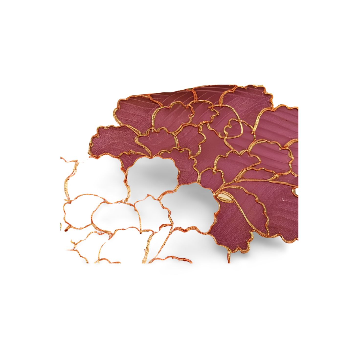 The Art of Gold: Koma-Nui What elevates this piece to the realm of Haute Couture is the opulent needlework. The contours of the carriage and blossoms are defined by Koma Embroidery—thick cords of genuine gold and silver foil are hand-couched onto the silk surface. This creates a tactile, three-dimensional relief that catches the chandelier light with every graceful movement.