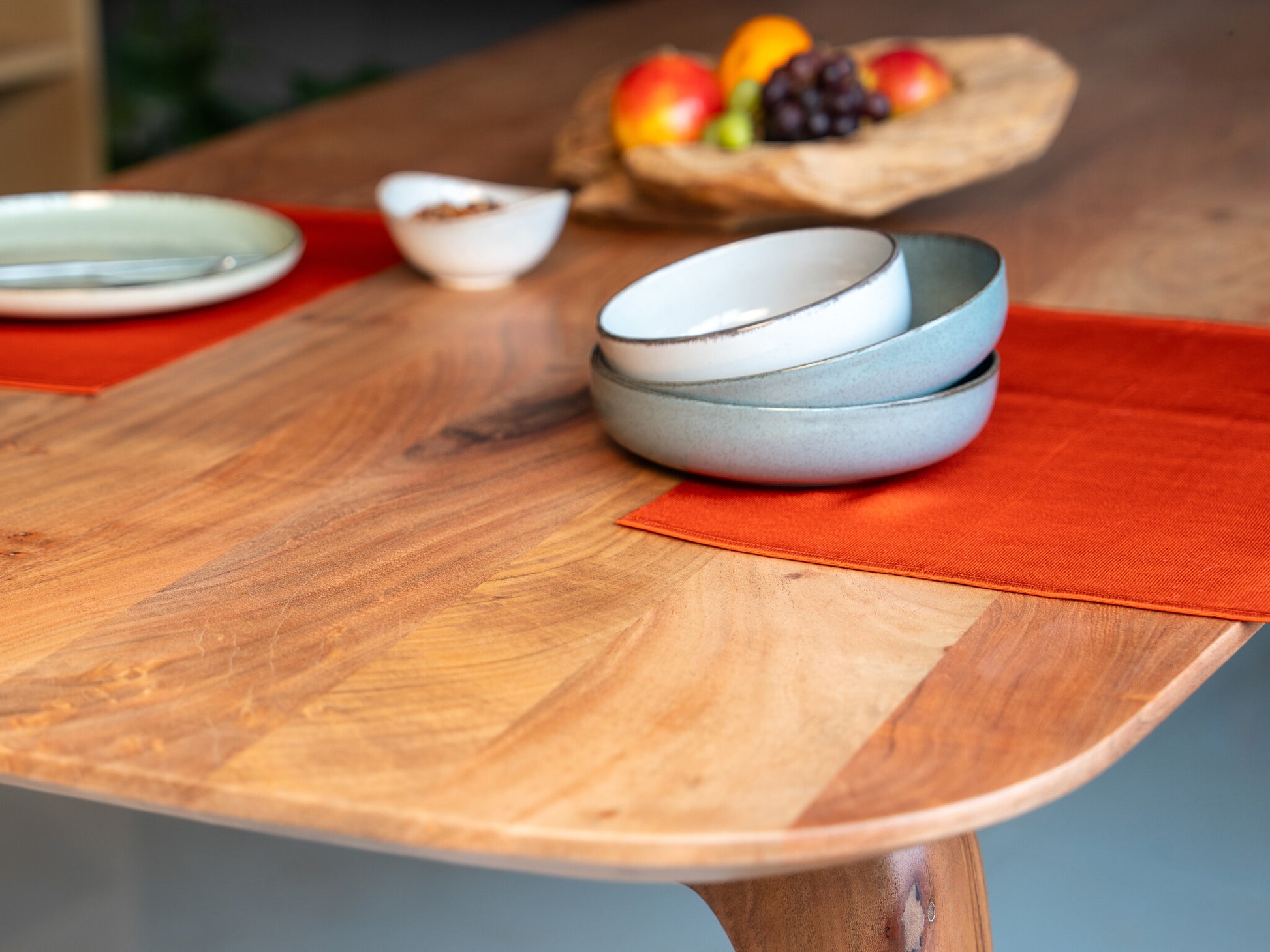 Designed to match the high-voltage energy of the Rising Sun Runner, these placemats are not merely background elements; they are kinetic art. The collection offers two distinct expressions of power, both crafted from the same lustrous vermilion vintage silk.